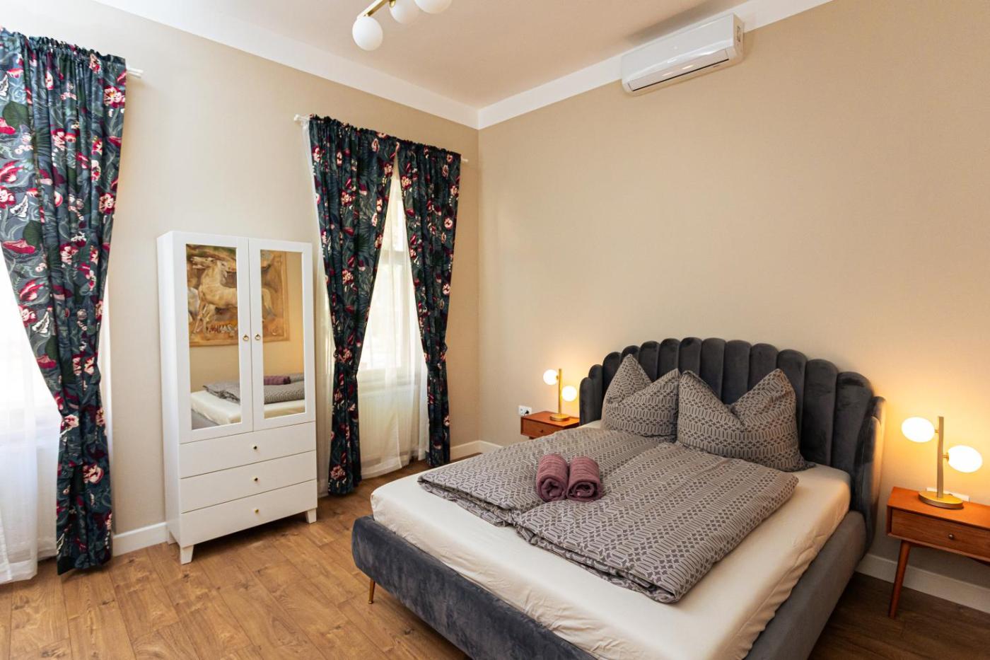 Deluxe Double Room. The spacious double room provides air conditioning, a seating area, as well as a private bathroom featuring a shower and a hairdryer. The double room features a wardrobe, parquet floors, heating, as well as a flat-screen TV with cable channels. The unit offers 1 bed.