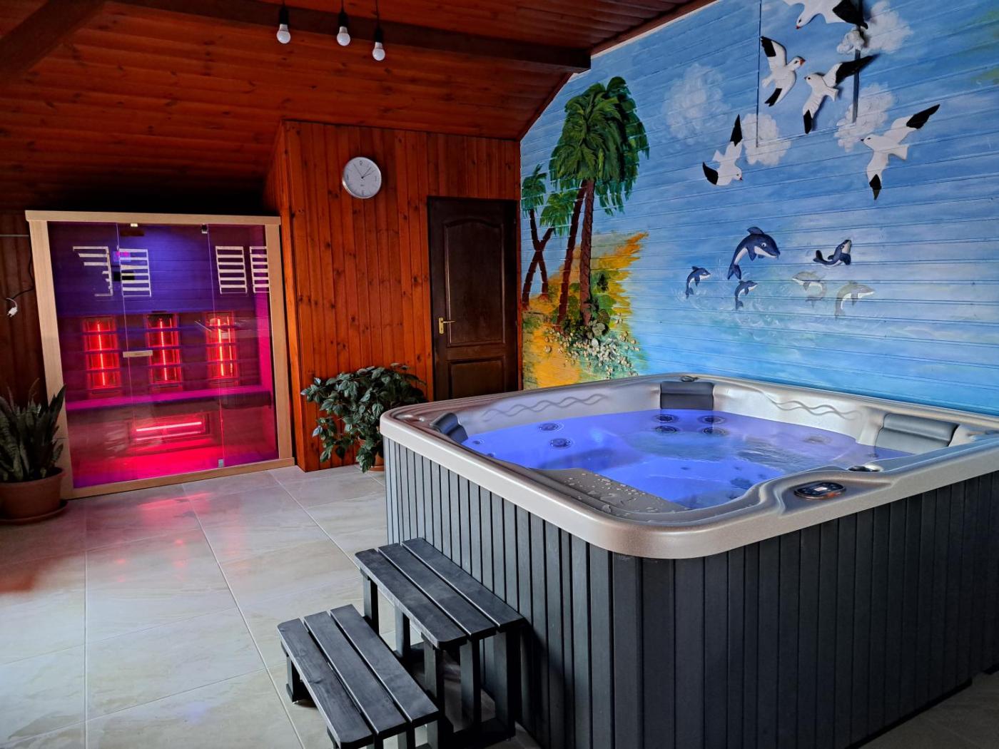 Three-Bedroom House. This holiday homes special features are the hot tub and the sauna. Featuring 3 bedrooms and 3 bathrooms, this spacious holiday home offers a living room and terraceyou can relax. The holiday homes kitchen is available for cooking and storing food. This holiday home provides heating, a flat-screen TV and garden views. The unit has 6 beds.